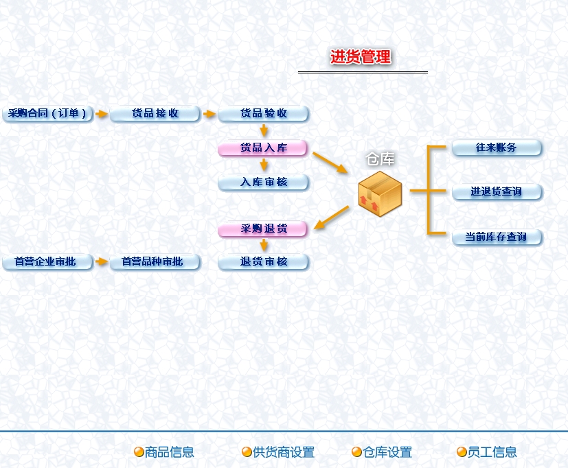 第二:医疗器械质量软件可以进行商品采购入库,采购退货,进/退单据和当前库存查询,与供货商的往来帐务,支持财务管理功能。